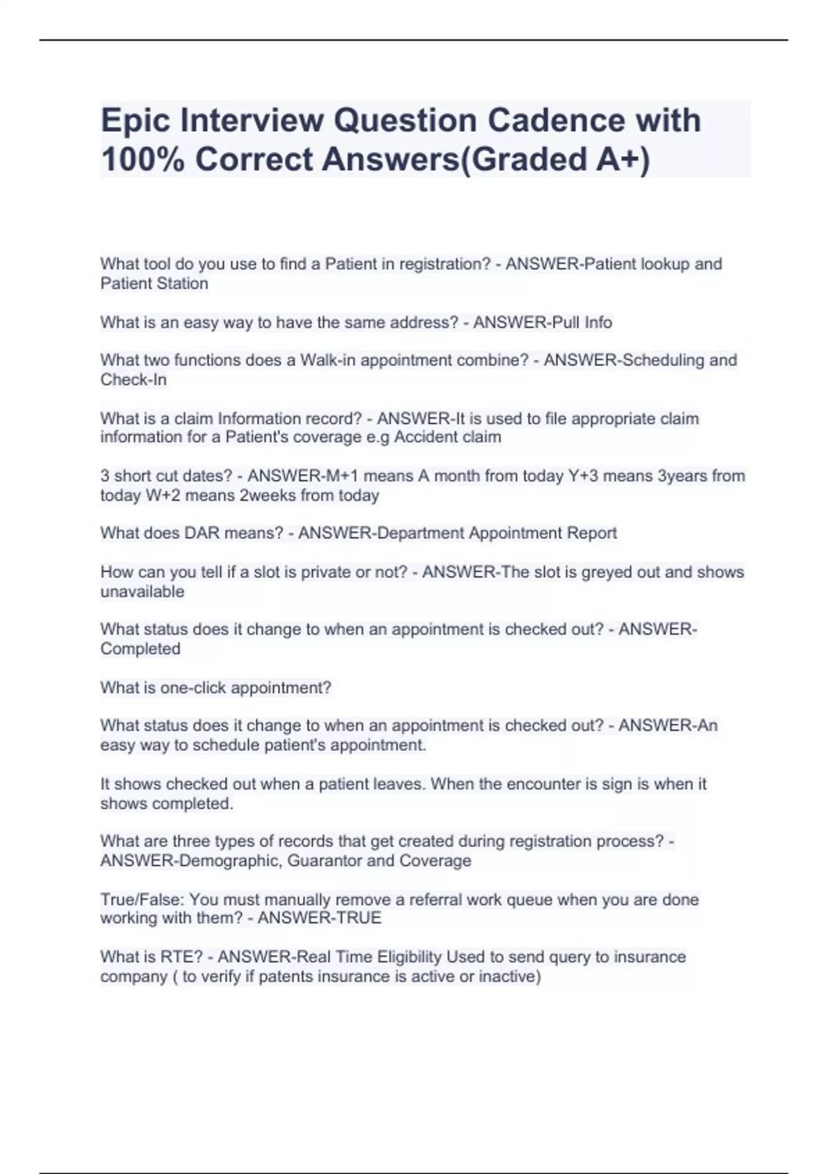 Epic Interview Question Cadence with 100% Correct Answers(Graded A+)