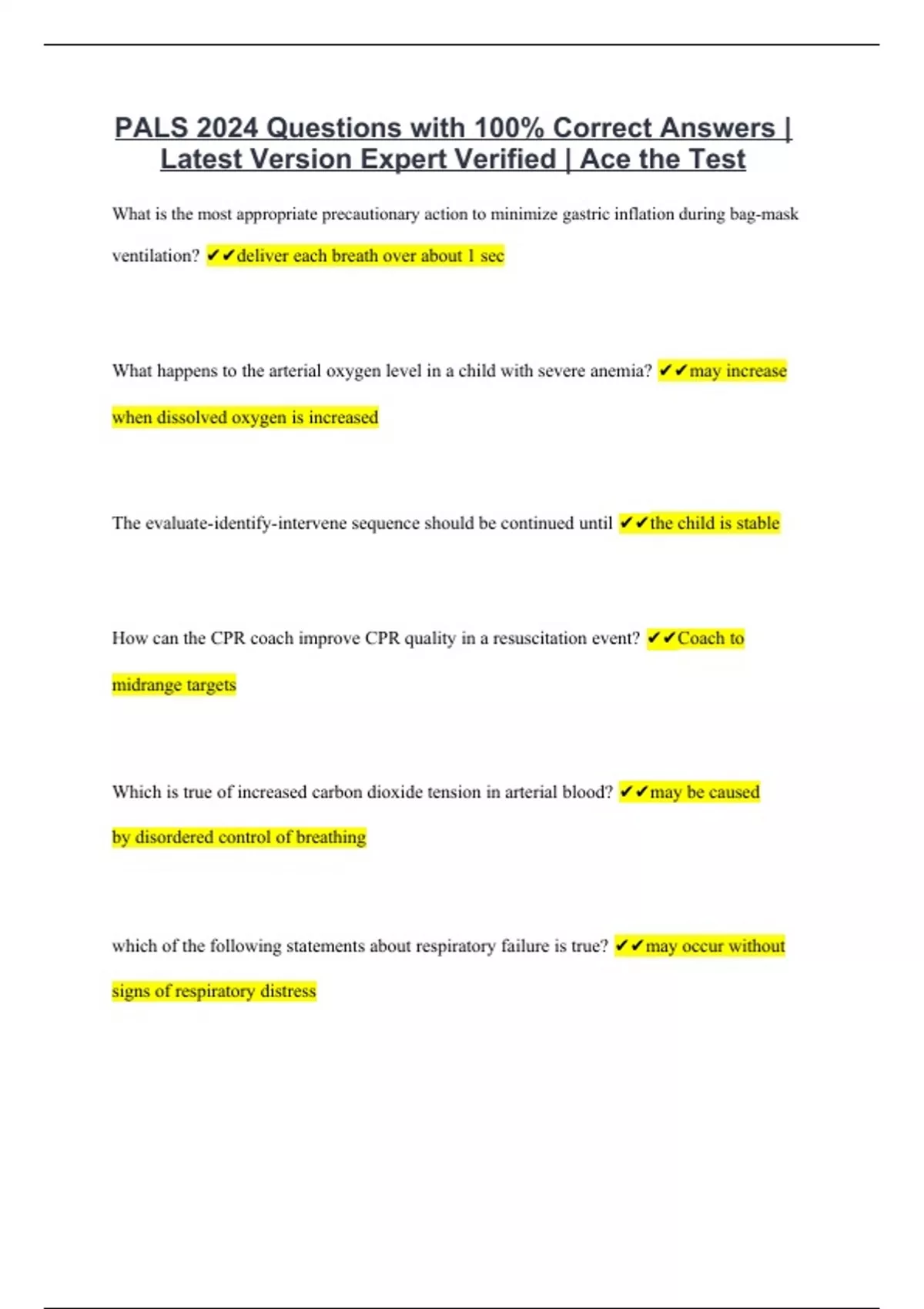 PALS Bundled Exam Resources with Complete Solution | Expert Verified 2024/2025 | Guaranteed Success