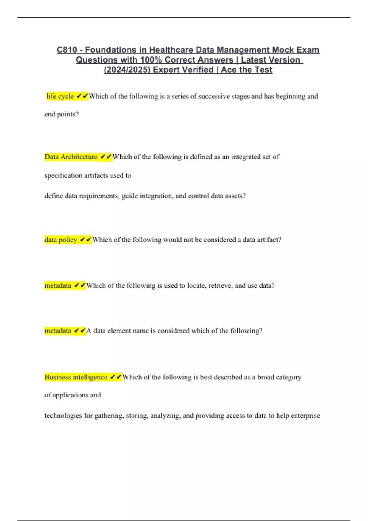 WGU C810 Bundled Exam Resources with Complete Solution | Expert Verified 2024/2025 | Guaranteed Success