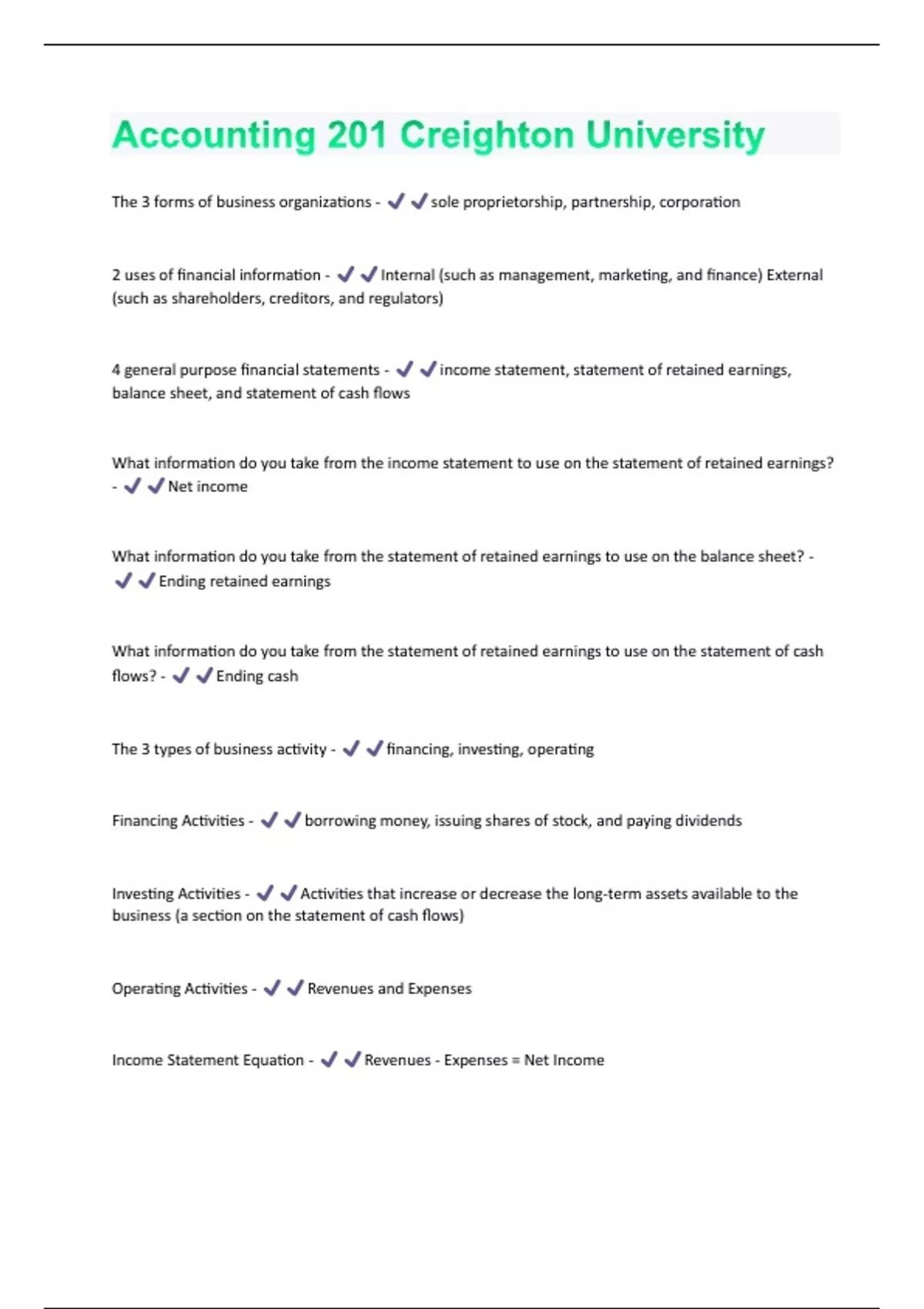 Accounting 201 Creighton University Questions With 100% Correct Answers.