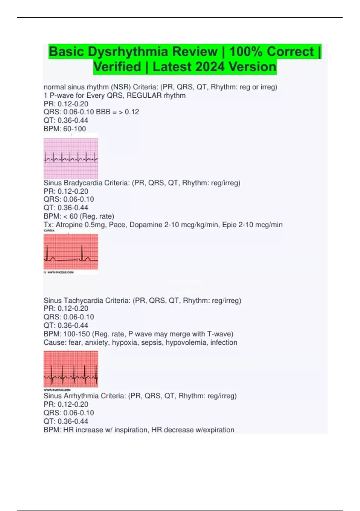 Dysrhythmias Bundled Exams Questions and Answers Latest Versions (2024/2025) (Complete and Accurate)
