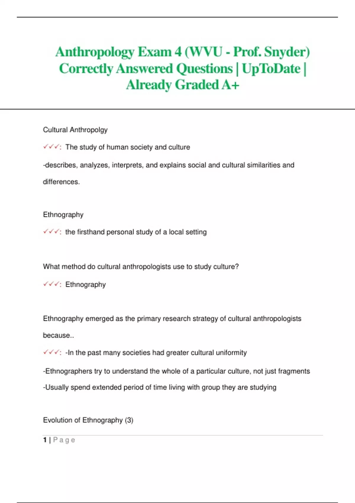 ANTHROPOLOGY EXAM 3 WVU Correctly Answered Questions| UpToDate | Already Graded A+
