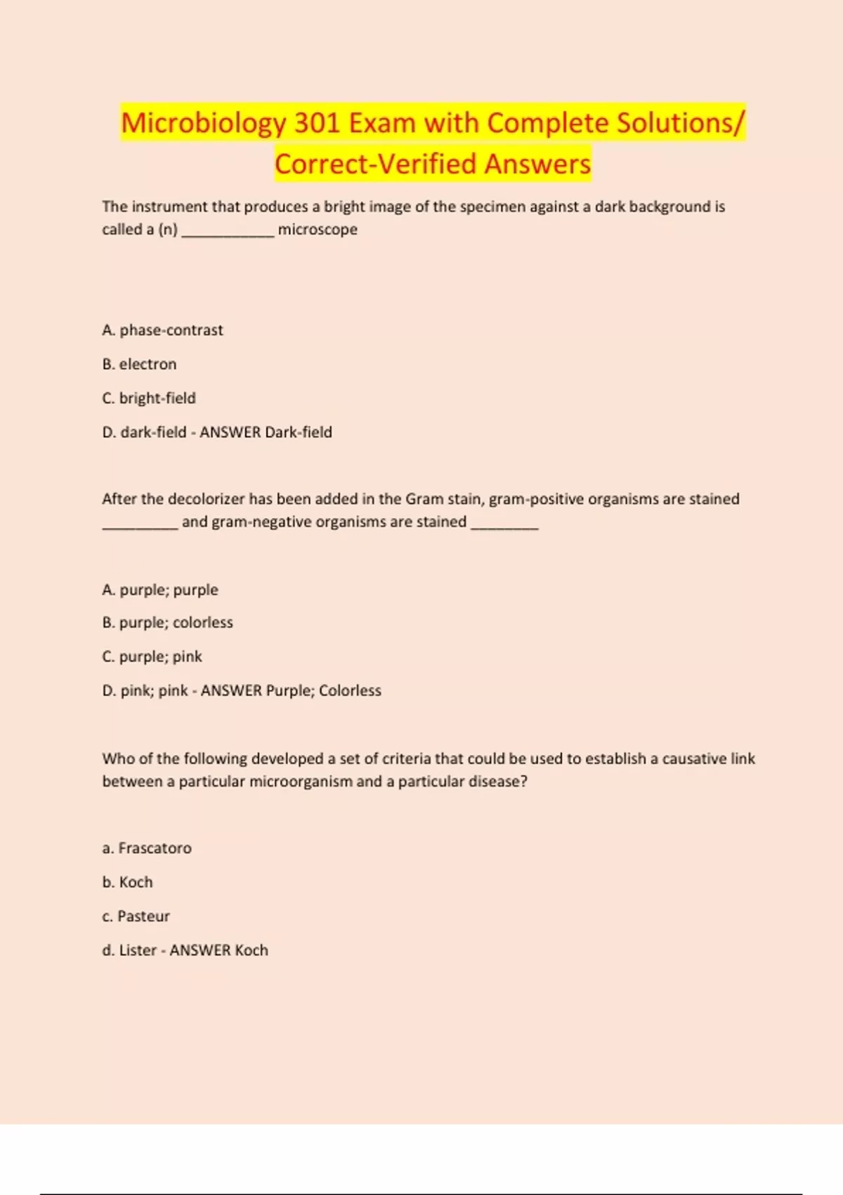 Microbiology 301 Exam with Complete Solutions/ Correct-Verified Answers