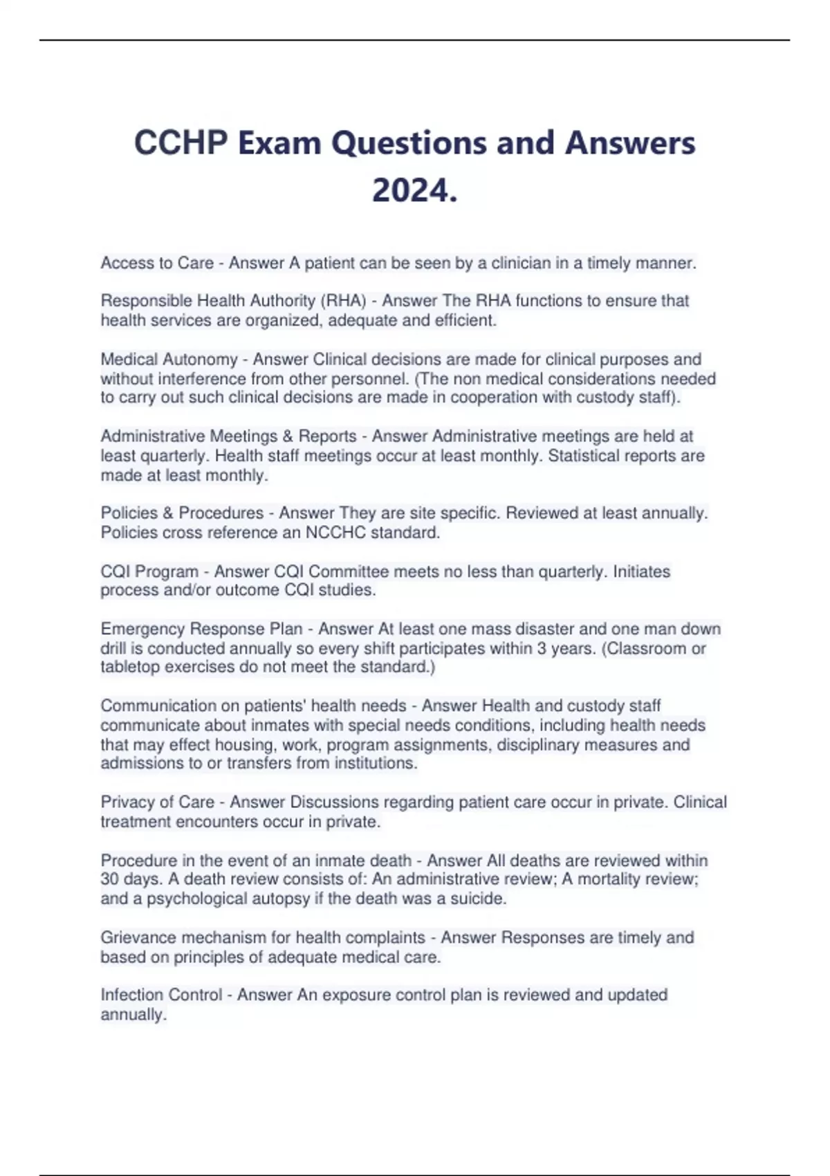 NCCHC CCHP Exam Questions And Answers!!