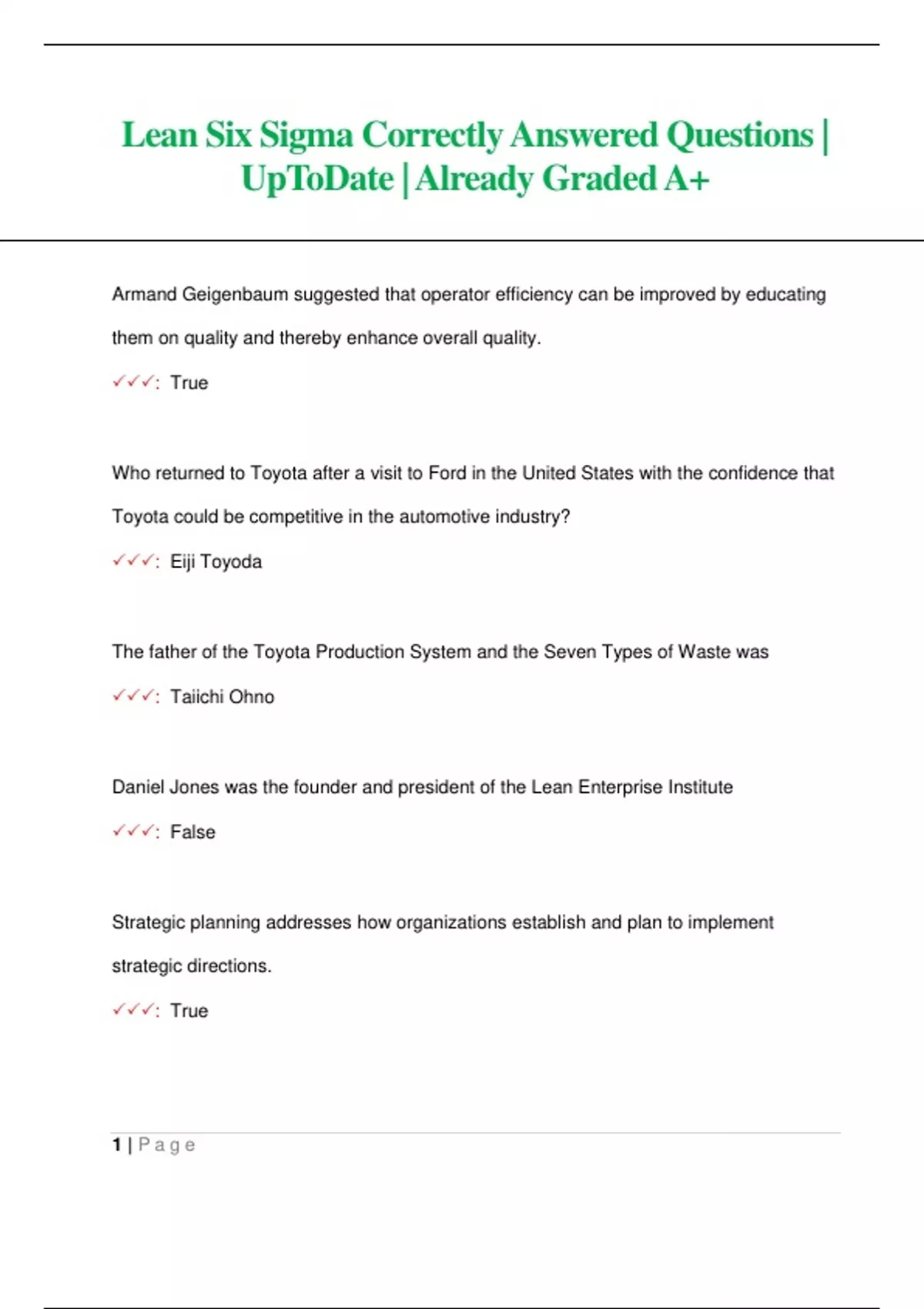 Lean Six Sigma Correctly Answered Questions Pack | UpToDate | Already Graded A+