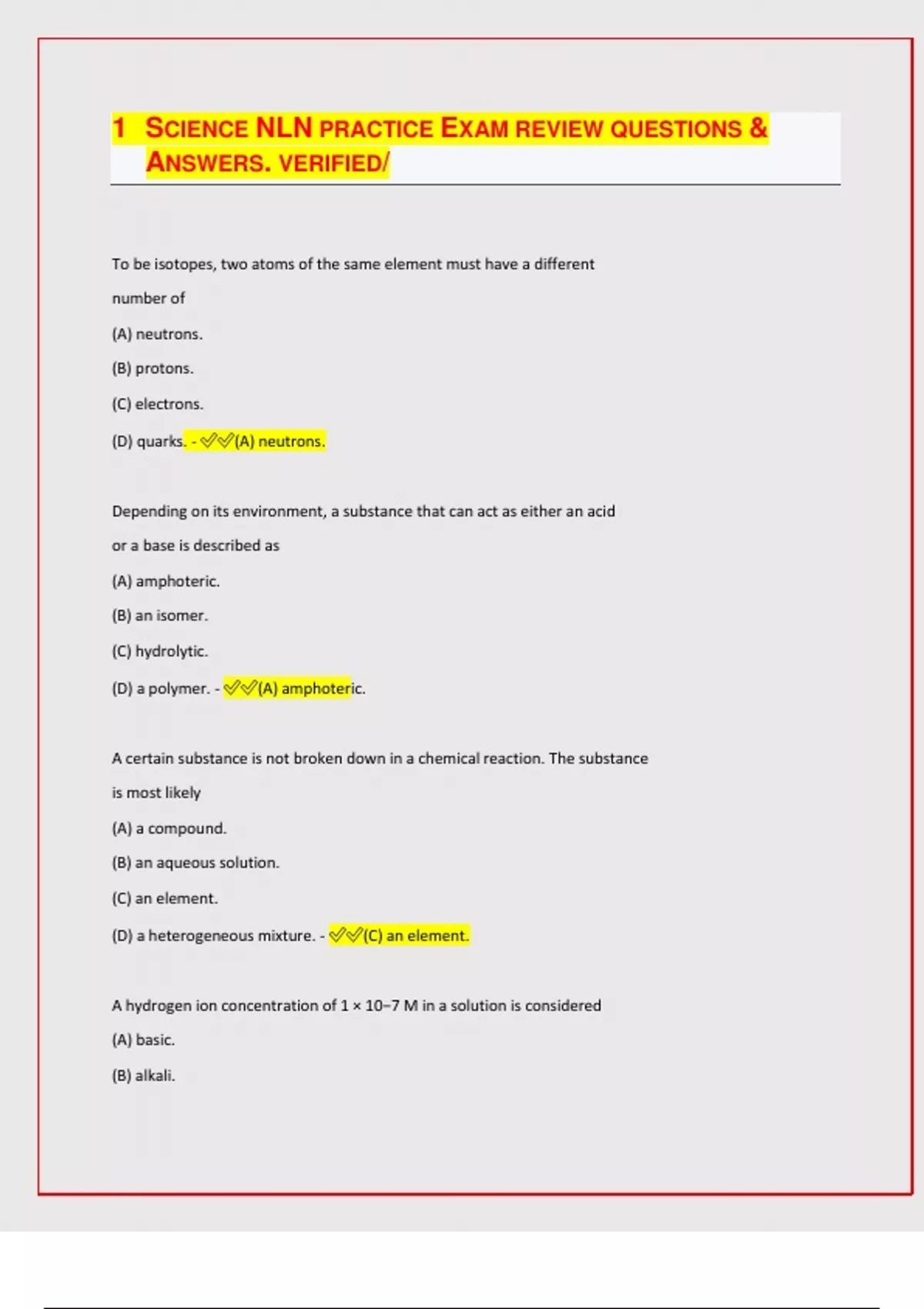SCIENCE NLN PRACTICE EXAM REVIEW QUESTIONS & ANSWERS. VERIFIED/