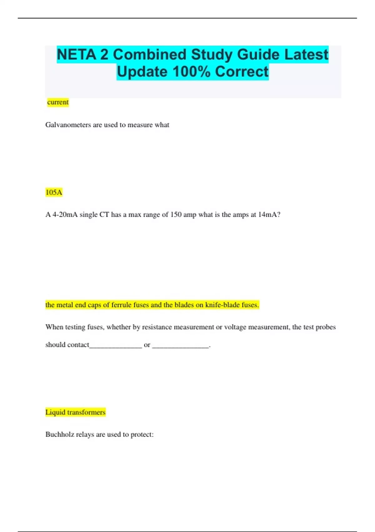 NETA 2 Combined Study Guide Latest Update 100% Correct