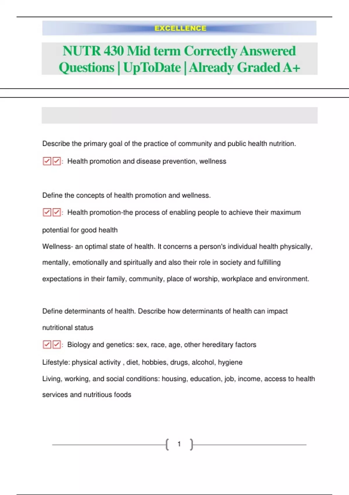 Nutr 430 Test #1 Correctly Answered Questions| UpToDate | Already Graded A+