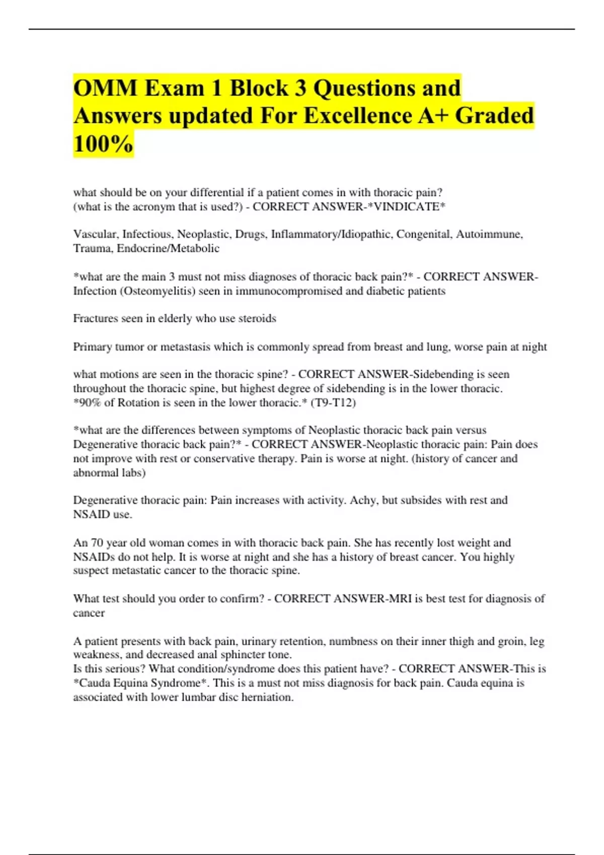 OMM exam 1 HY - block 3 detailed Questions and Answers 100% A+ plus OMM Exam 1 Block 3 Questions and Answers updated For Excellence A+ Graded 100% package deal excel