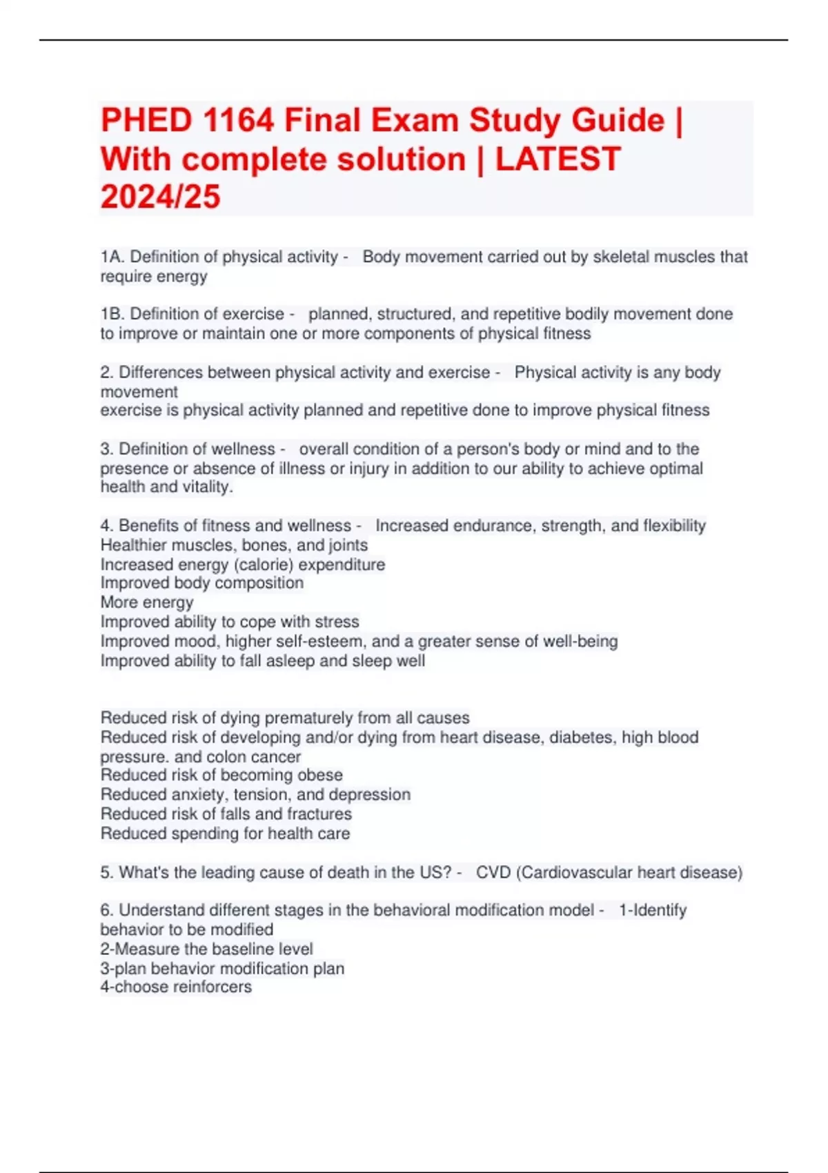 Exam (elaborations) PHED Final Exam | Latest Questions and answers | Updated 2024/25 2 Exam (elaborations) PHED 1164 Final Exam | With complete solution | Latest 2024/25PHED 1164 Final Exam | With complete solution | Latest 2024/25 3 Exam (elaborations) PHED 1164 Final Exam Study Guide | With complete solution | 2024/25 4 Exam (elaborations) PHE