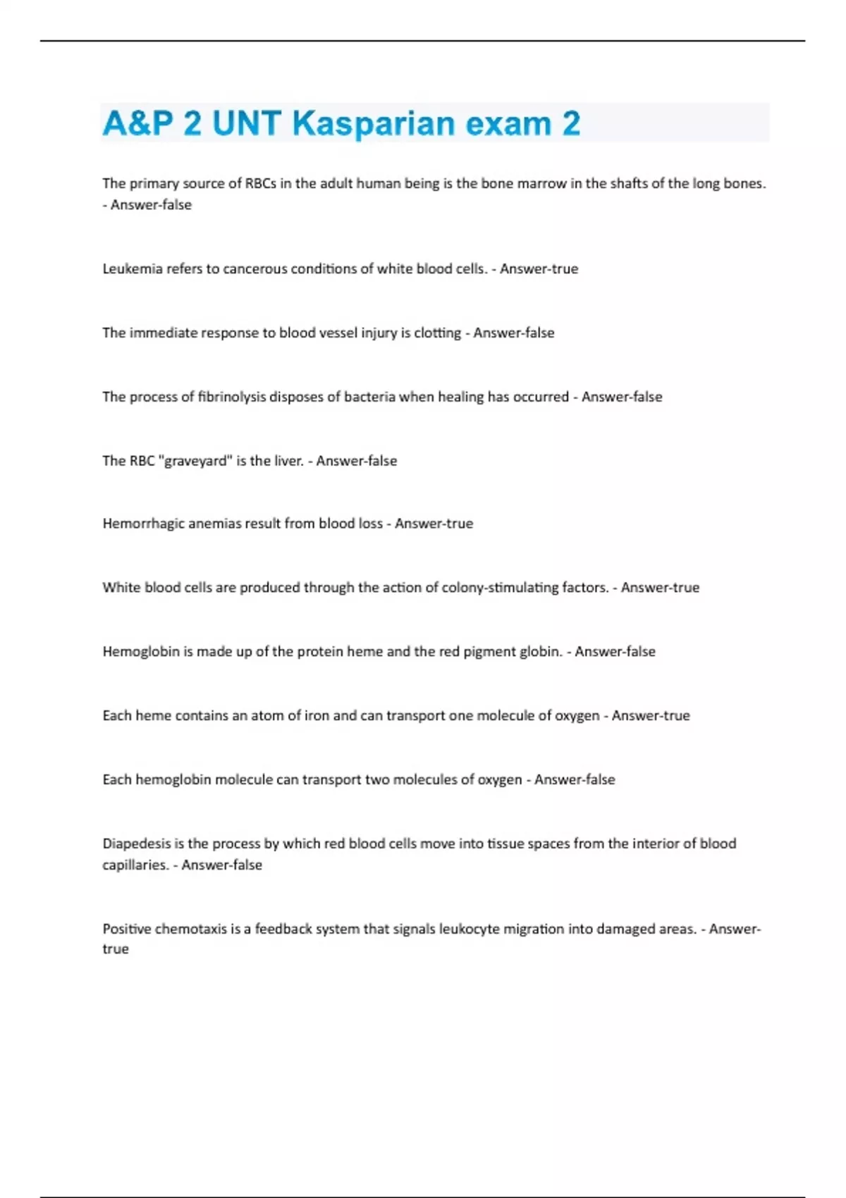 A&P 2 UNT Kasparian exam 2 Questions And Answers With Verified Study Solutions