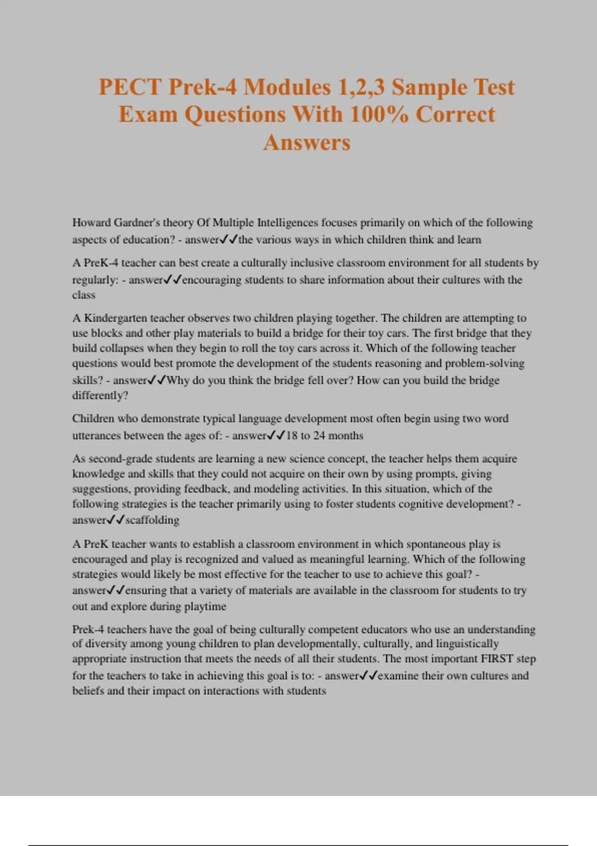 PECT Prek-4 Modules 1,2,3 Sample Test Exam Questions With 100% Correct Answers