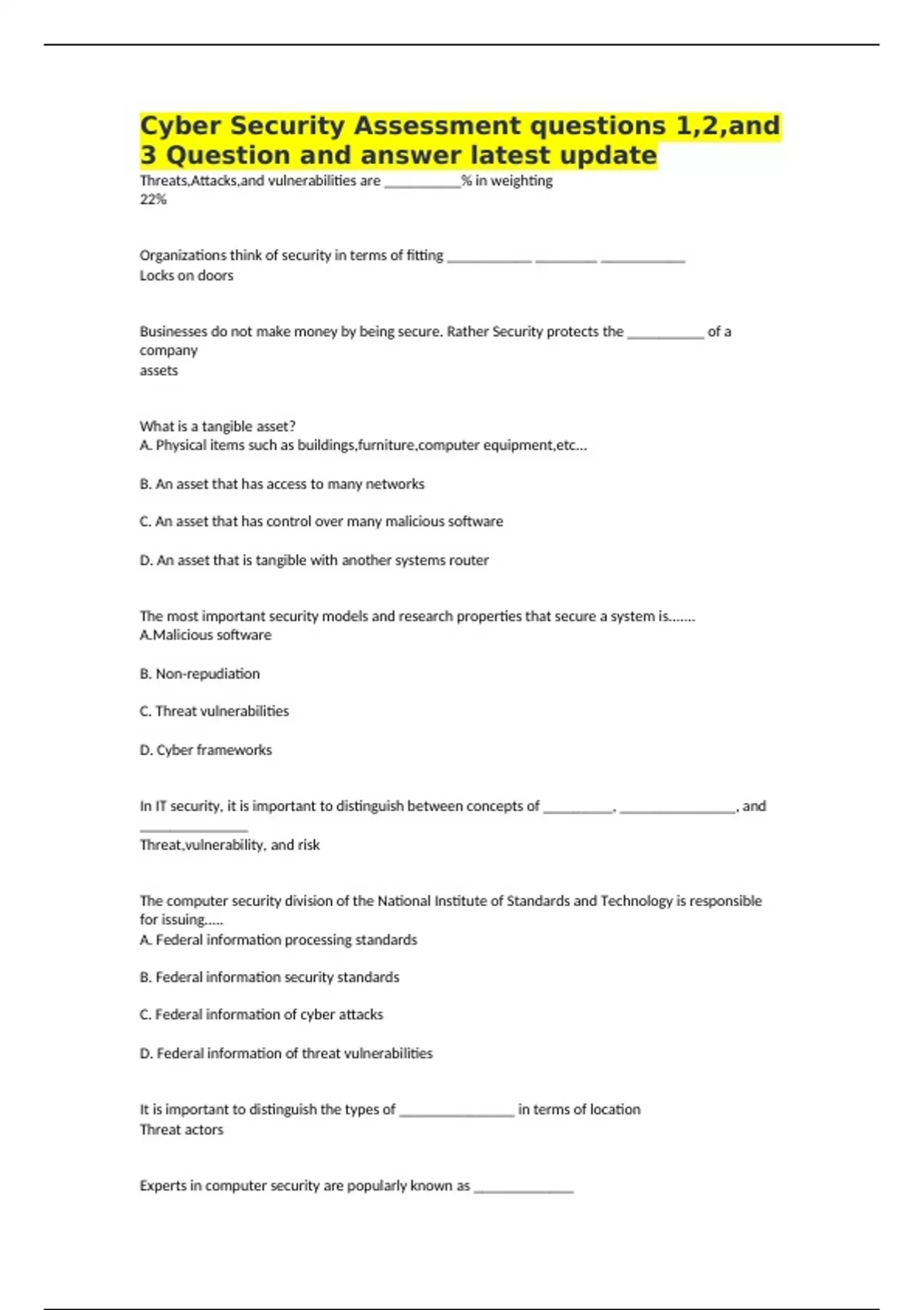 Exam (elaborations) SANS SEC401 Question and answer latest update 2 Exam (elaborations) GSEC GIAC Security Essentials Question and answer latest update 3 Exam (elaborations) GSEC GIAC Security Essentials Study Guide Question and answer latest update 4 Exam (elaborations) GSEC Exam Study Question and answer latest update 5 Exam (elaborations) G