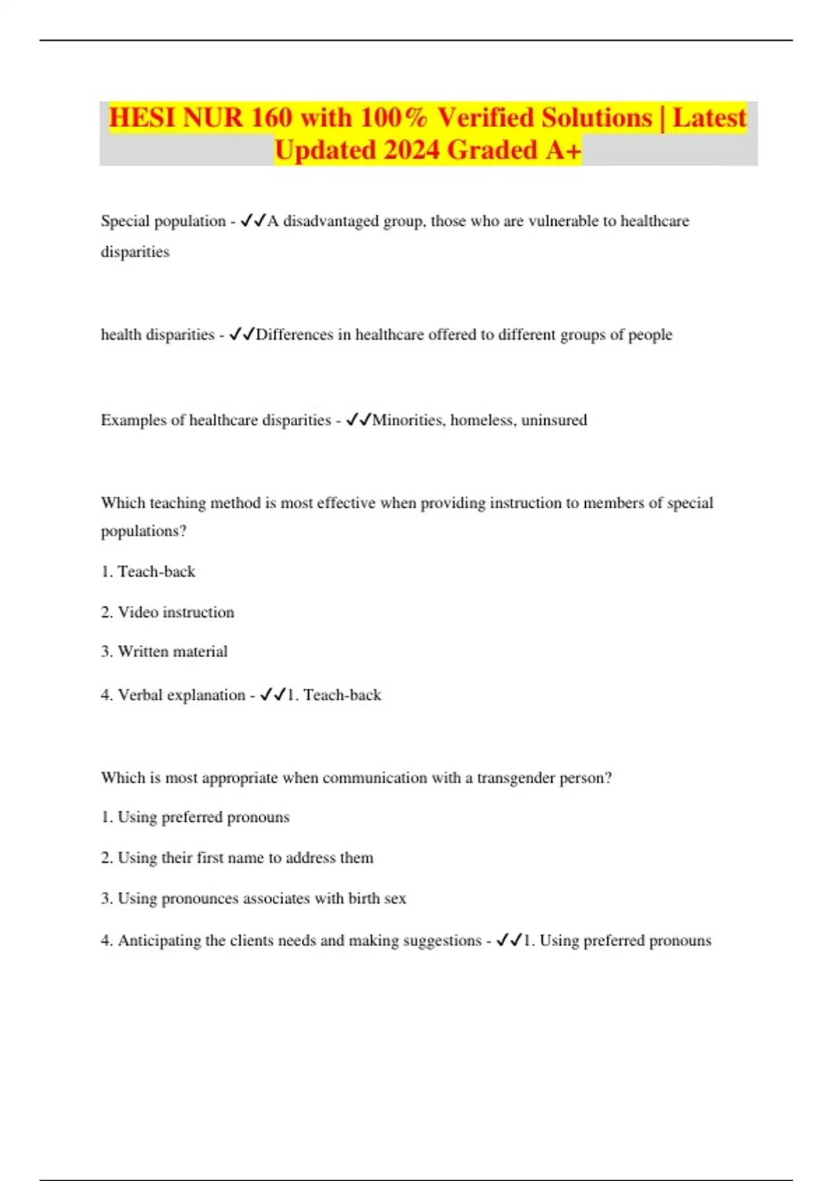 HESI NUR 160 with 100% Verified Solutions | Latest Updated 2024 Graded A+