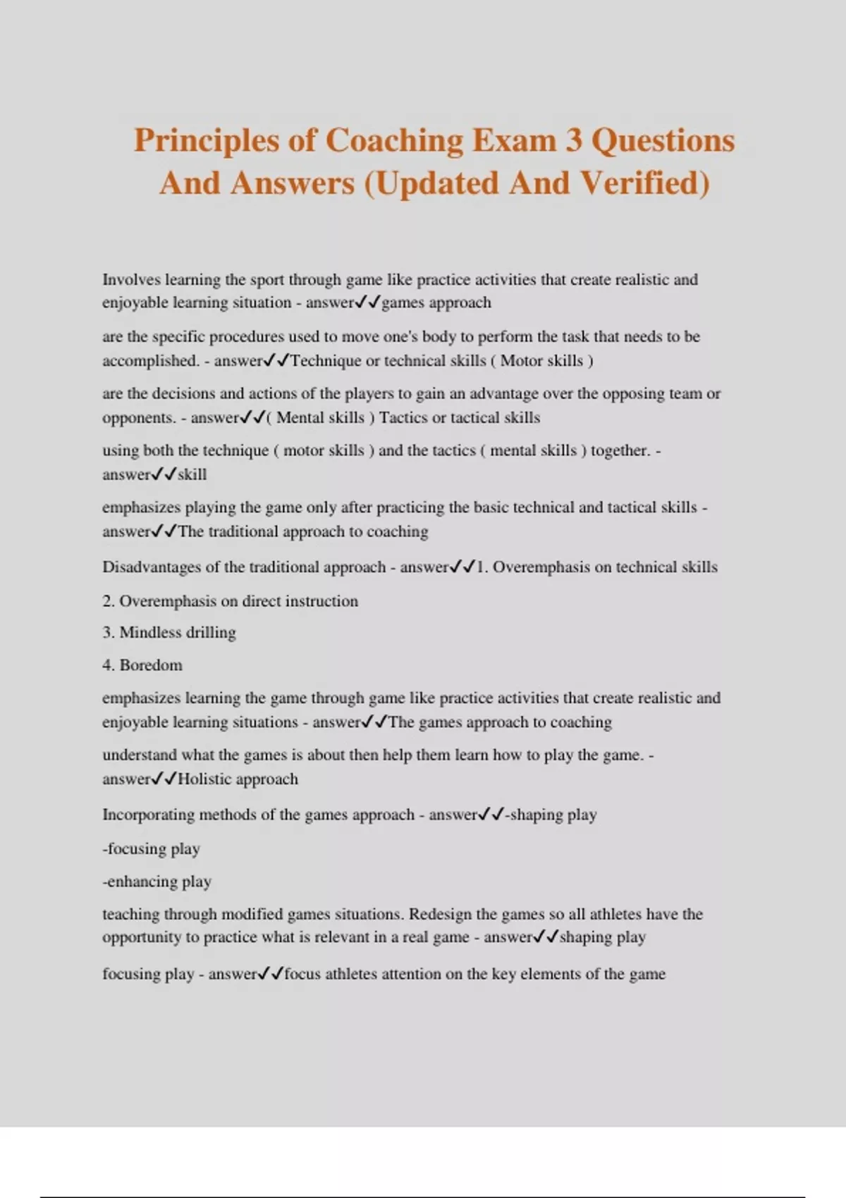 Principles of Coaching Exam 3 Questions And Answers (Updated And Verified)