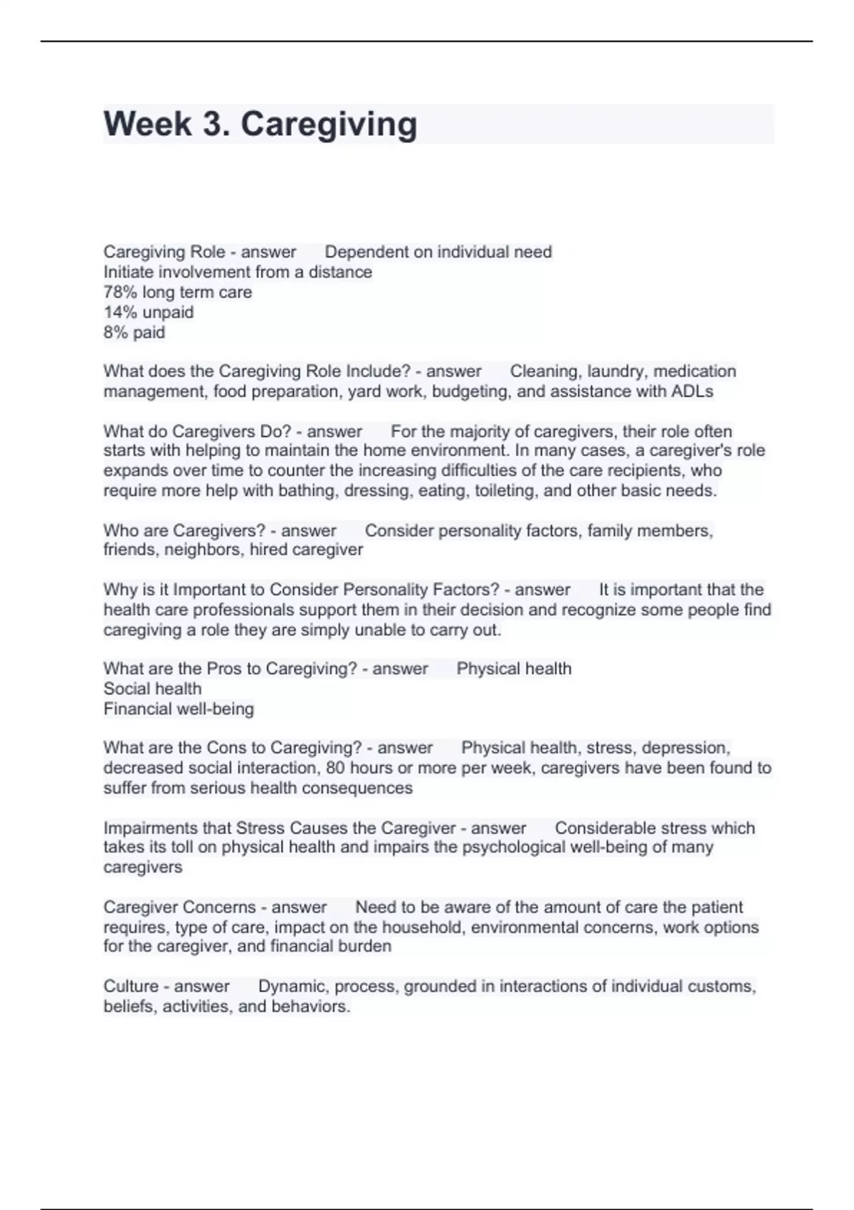 Caregiving and Caregiver Role Strain Questions and Answers 100% Solved