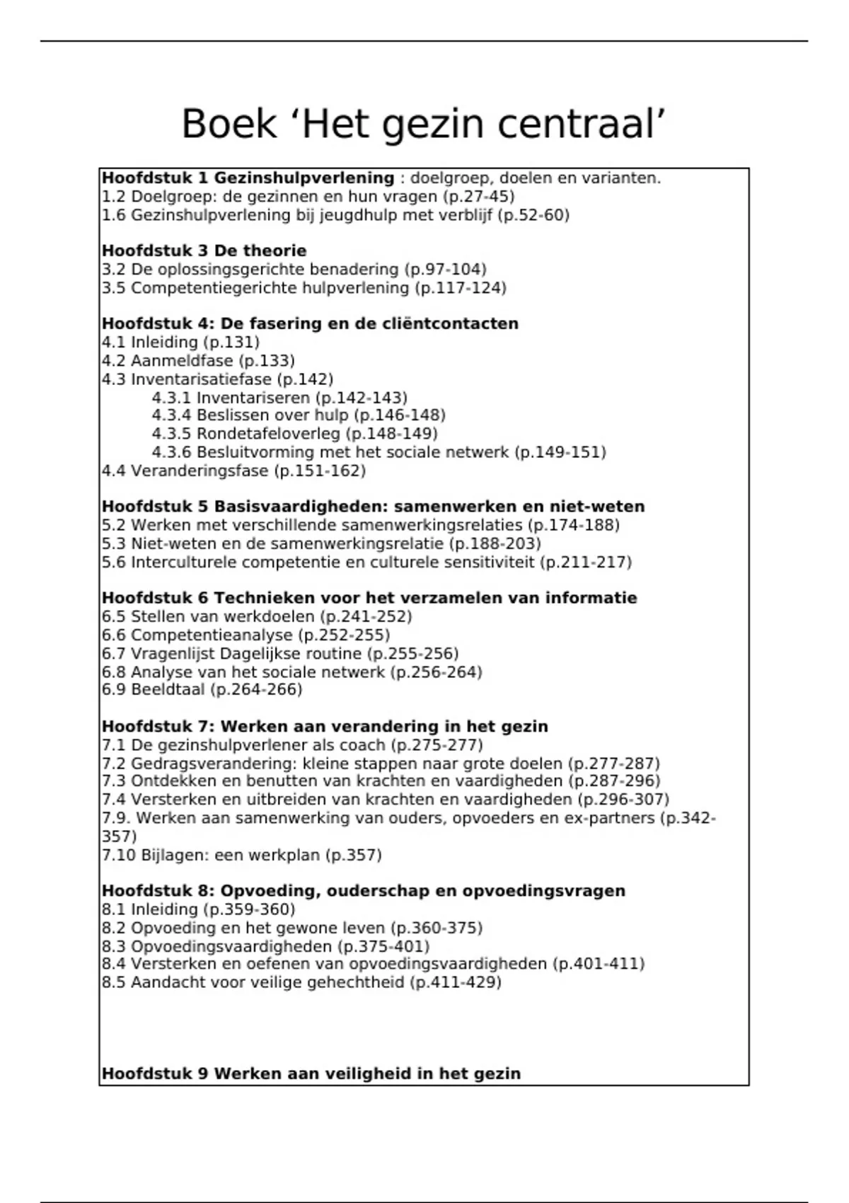 Inhoudstafel boek 'gezin centraal'
