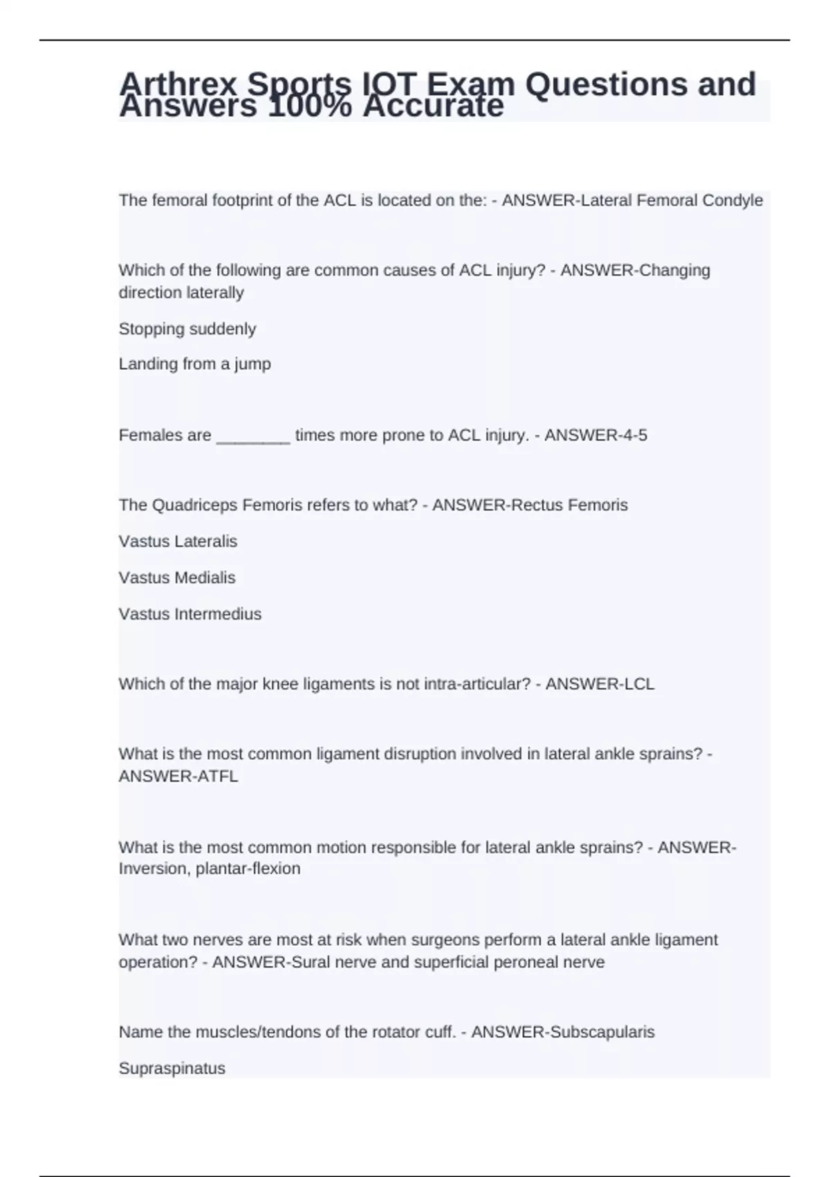 Arthrex Sports IOT (Day 1/test) Exam Questions and Answers(GRADED A+)