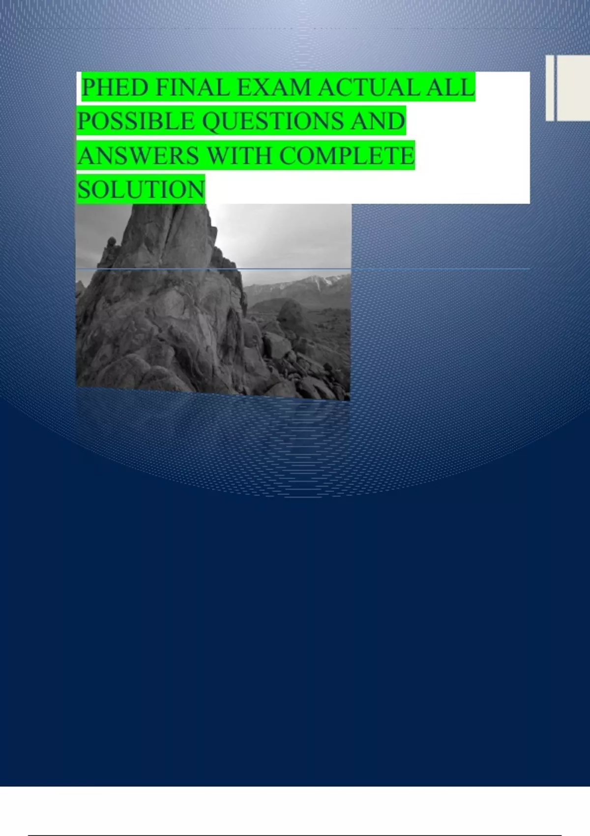 PHED FINAL EXAM ACTUAL ALL POSSIBLE QUESTIONS AND ANSWERS WITH COMPLETE SOLUTION