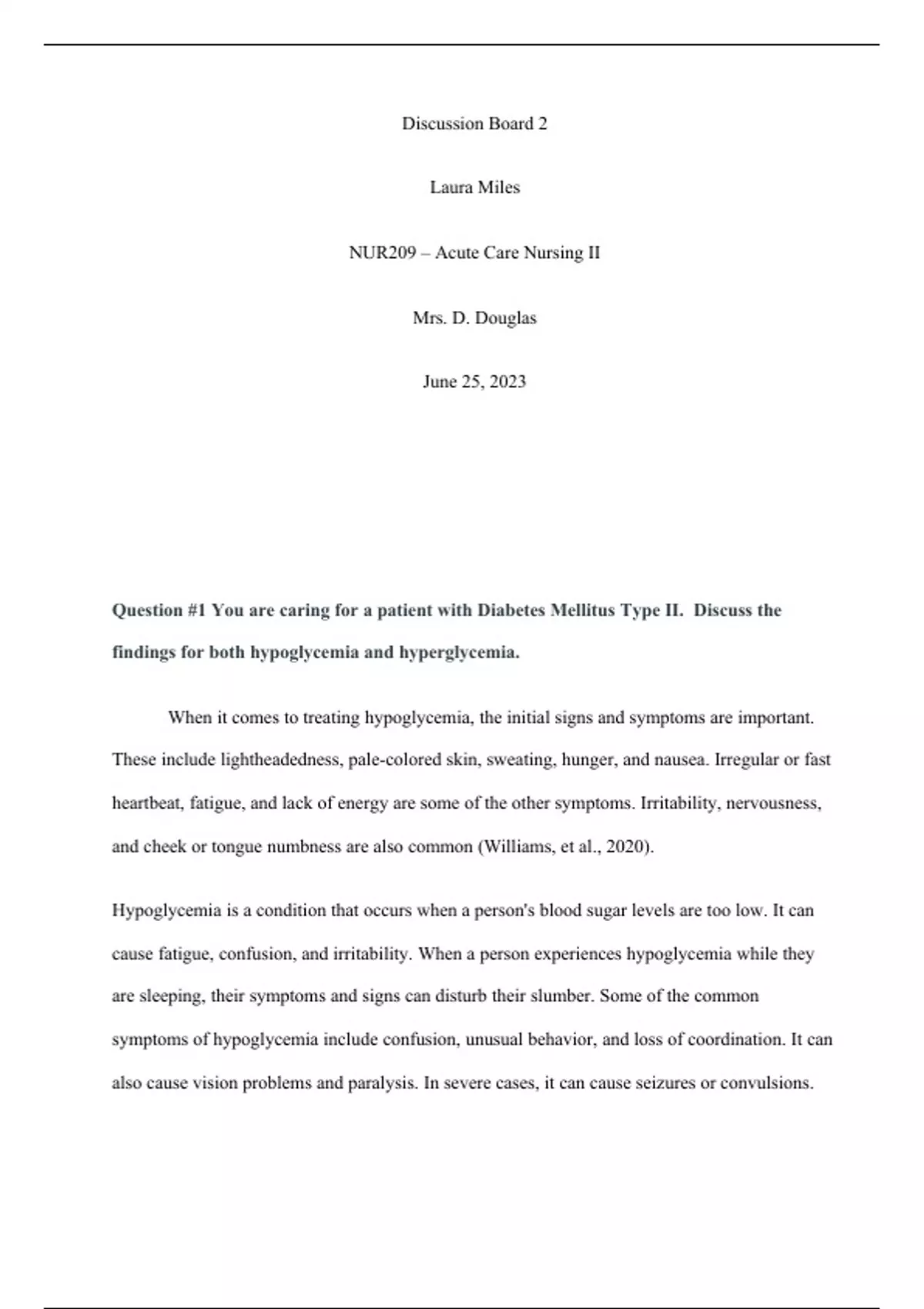 Discussion Board Package NUR 204