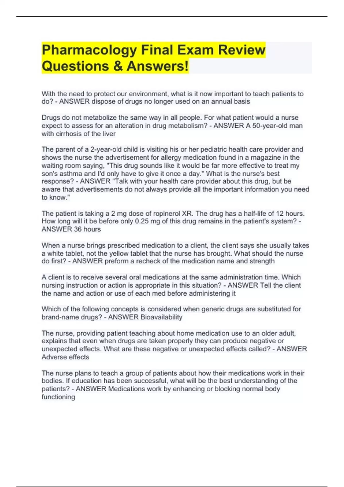 EXAM BUNDLE Pharmacology Final(COMPLETE PACKAGE) Questions & Answers(RATED A+)EXAM BUNDLE Pharmacology Final(COMPLETE PACKAGE) Questions & Answers(RATED A+)EXAM BUNDLE Pharmacology Final(COMPLETE PACKAGE) Questions & Answers(RATED A+)EXAM BUNDLE Pharmacology Final(COMPLETE PACKAGE) Questions & Answers(RATED A+)EXAM BUNDLE Pharmacology Final(COMPLET