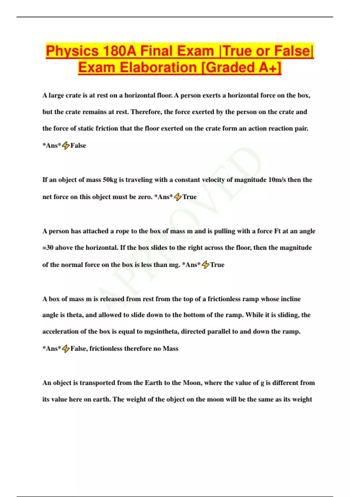 Physics 260 Test Bank |Verified PACKAGE DEAL| 100% Correct