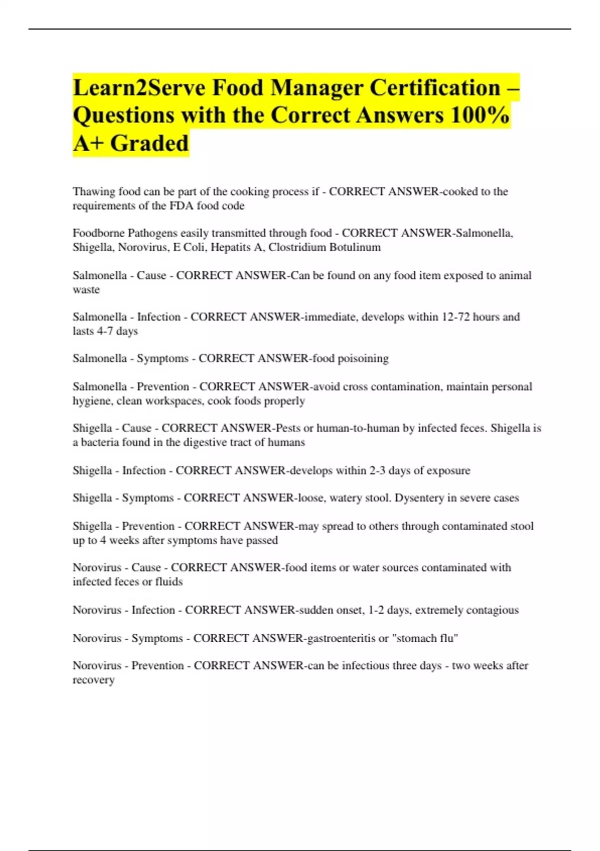 LEARN2SERVE FOOD MANAGER 2024 _ Package Deal Updated 100% A+