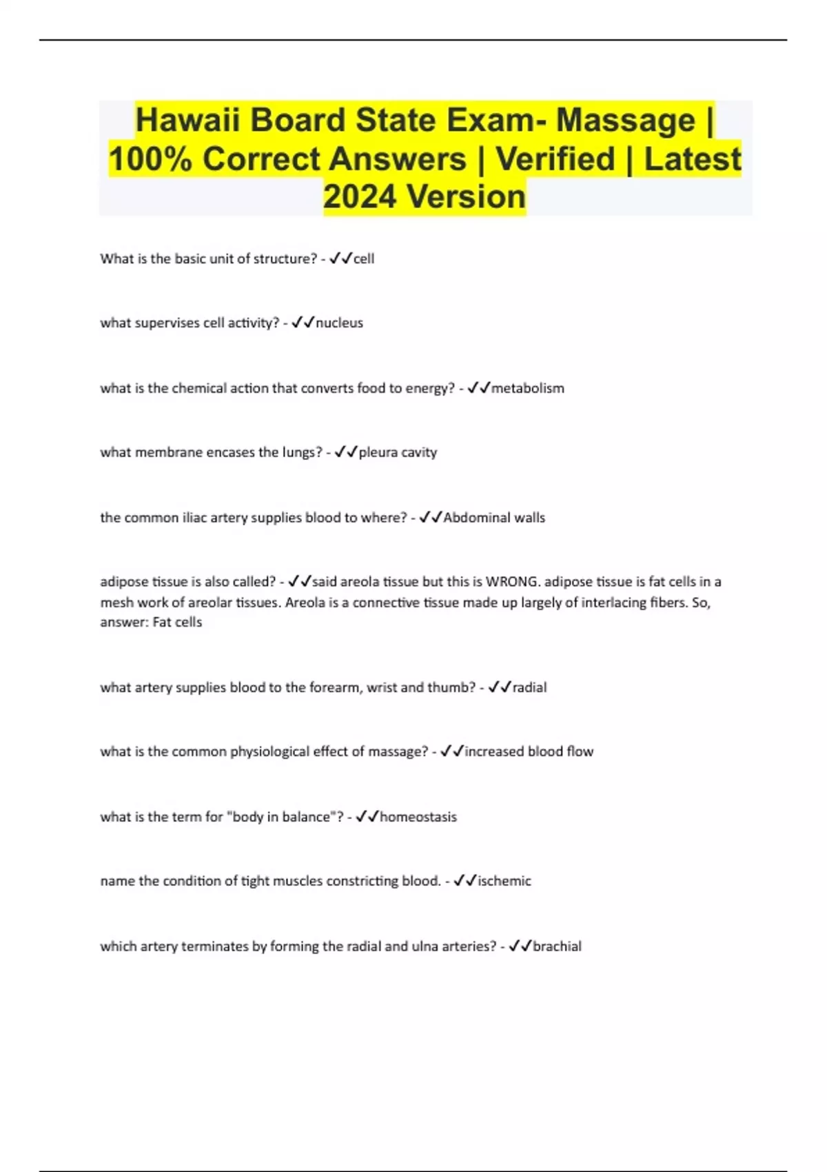 Hawaii Massage Bundled Exams Questions and Answers Latest Versions (2024/2025) (Complete and Accurate)