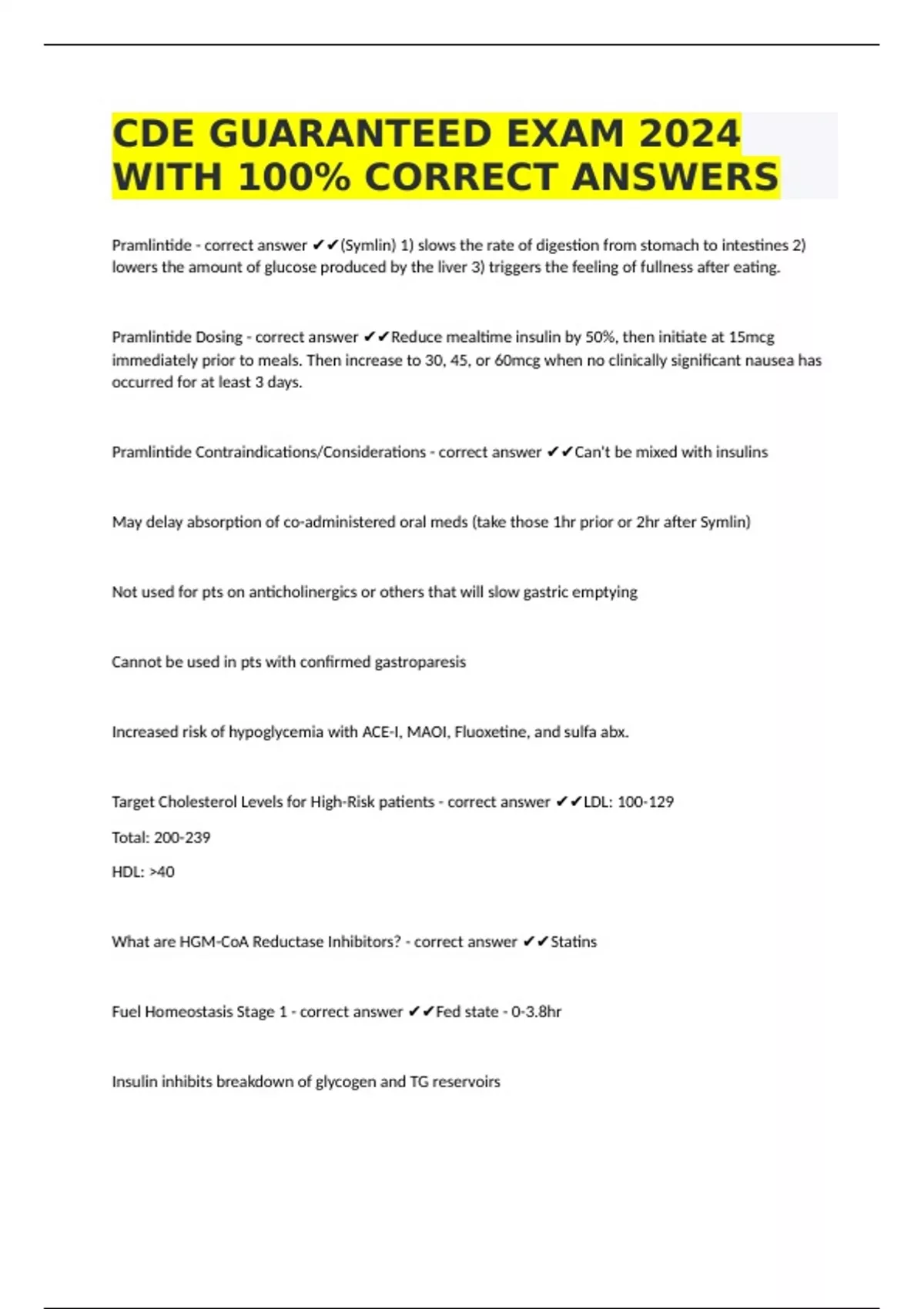 CDE PRACTICE EXAM 1 2024 WITH CORRECT ANSWERS CDE PRACTICE EXAM QUESTIONS WITH 100% CORECT ANSWERS CDE 1 FINAL EXAM GUIDE 2024 WITH CORRECT ANSWERS CDE GUARANTEED EXAM 2024 WITH 100% CORRECT ANSWERS