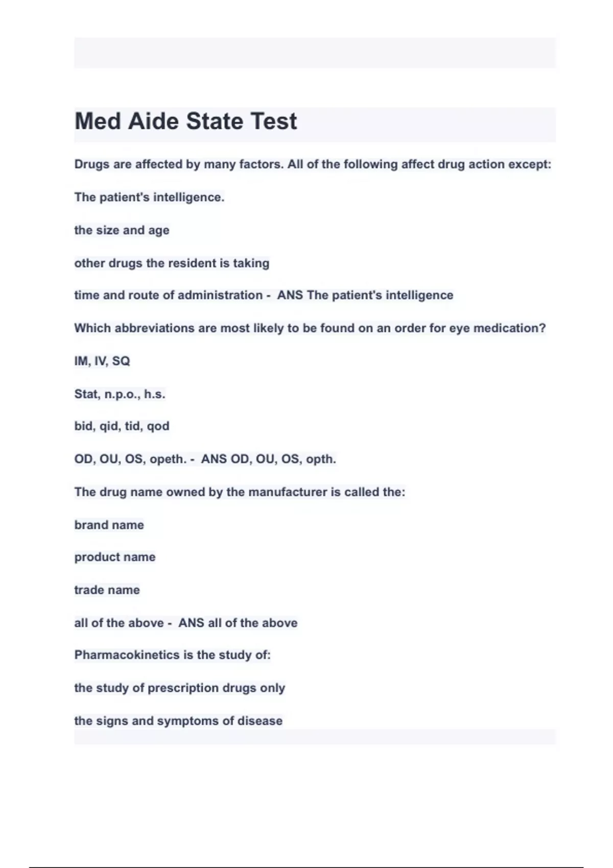Med Aide State Test Questions with correct Answers 2024/2025( A+ GRADED 100% VERIFIED).