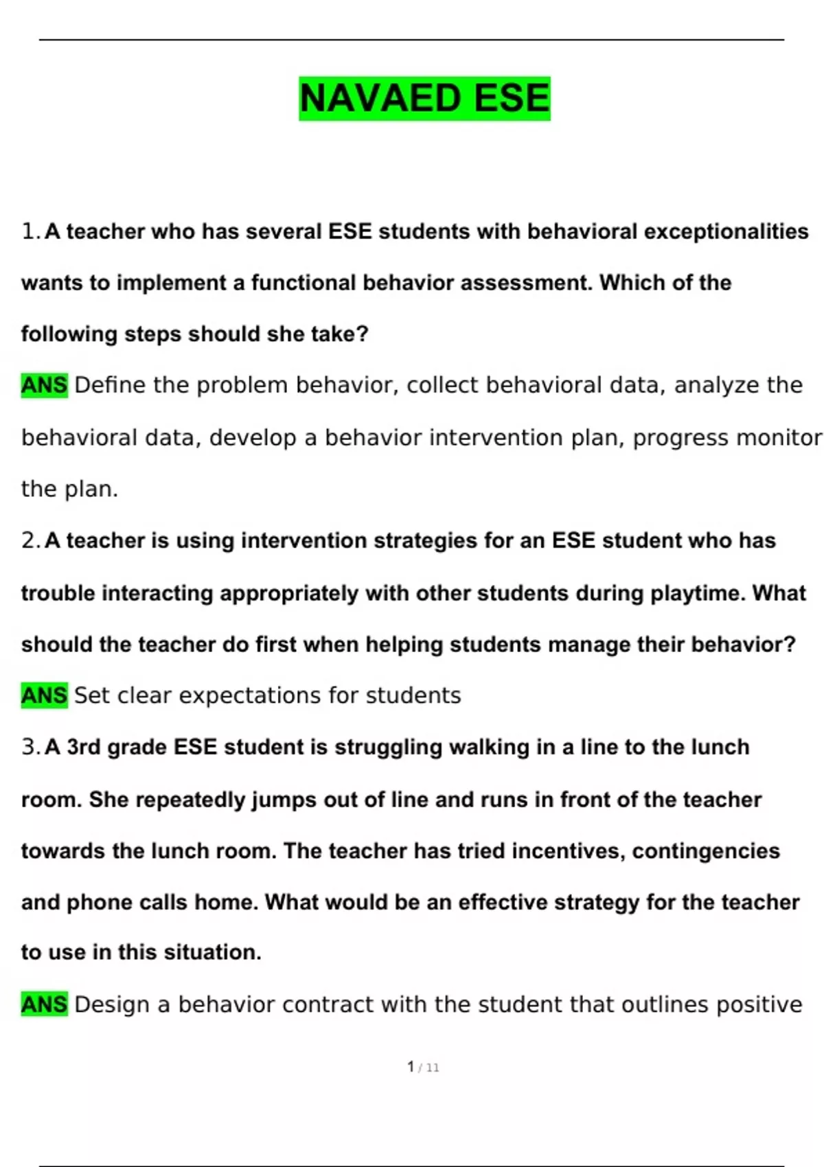 FTCE ESE BUNDLED FTCE NAVAED ESE K-12 FTCE ESE Certification Exam NavaED FTCE ESE Practice Test 1 FTCE NavaED Middle Grades English 5-9 Questions and Answers Graded A+