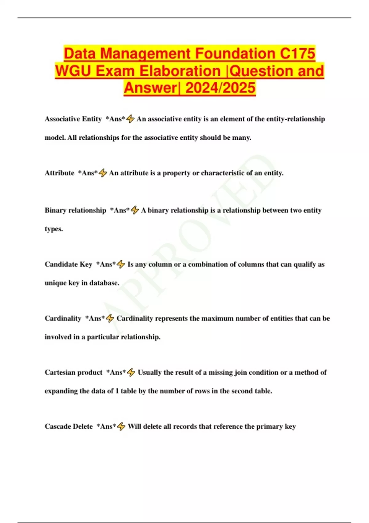 WGU C175 Exam Elaboration |PACKAGE DEAL| 100% Correct