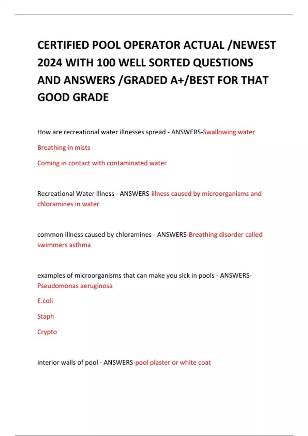 CERTIFIED POOL OPERATOR ACTUAL EXAM BUNDLE DEAL