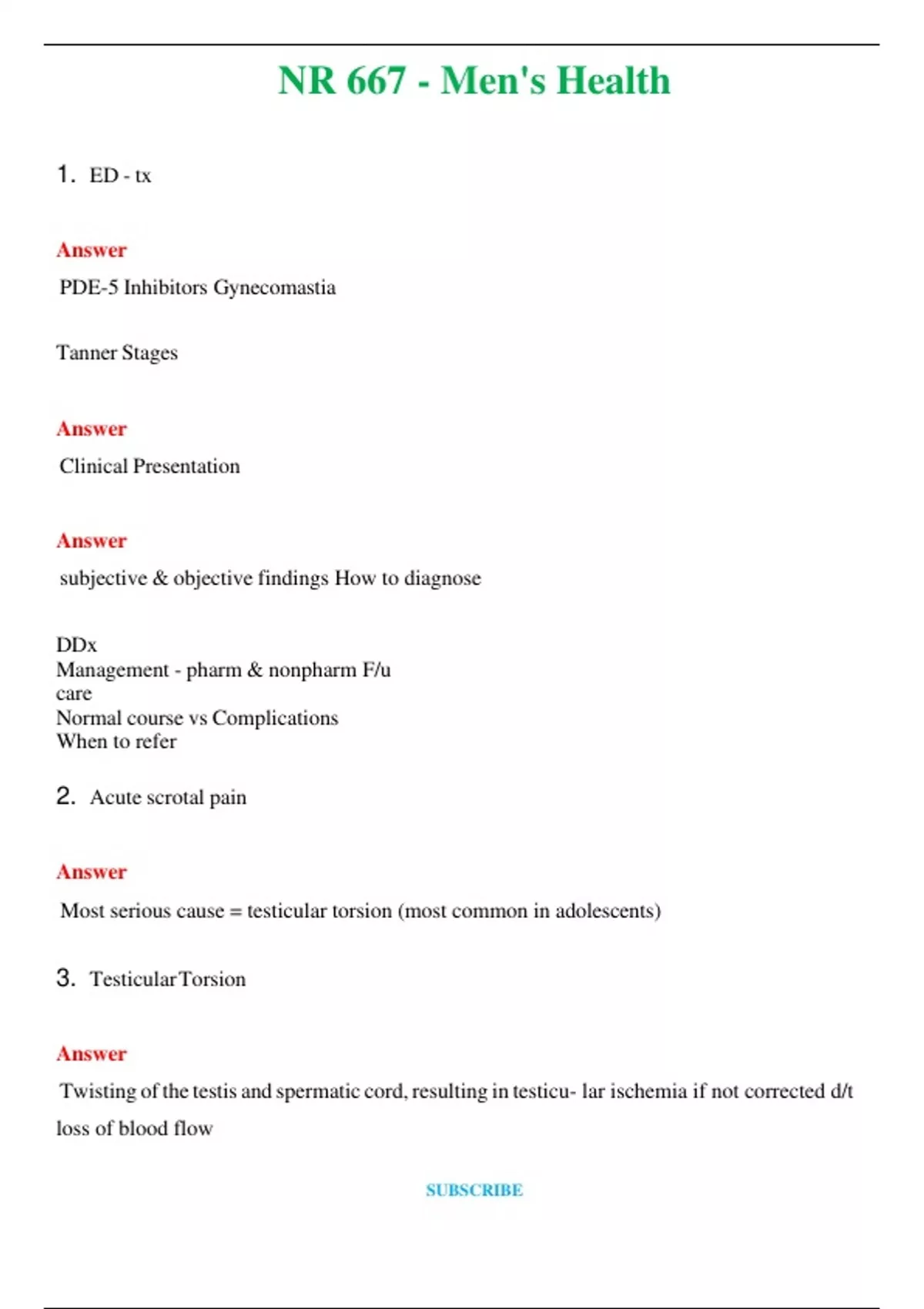 NR 667 Bundle Men's Health , Women's Health Complete Answers 100% Correct (Latest 2024) TEST BANK