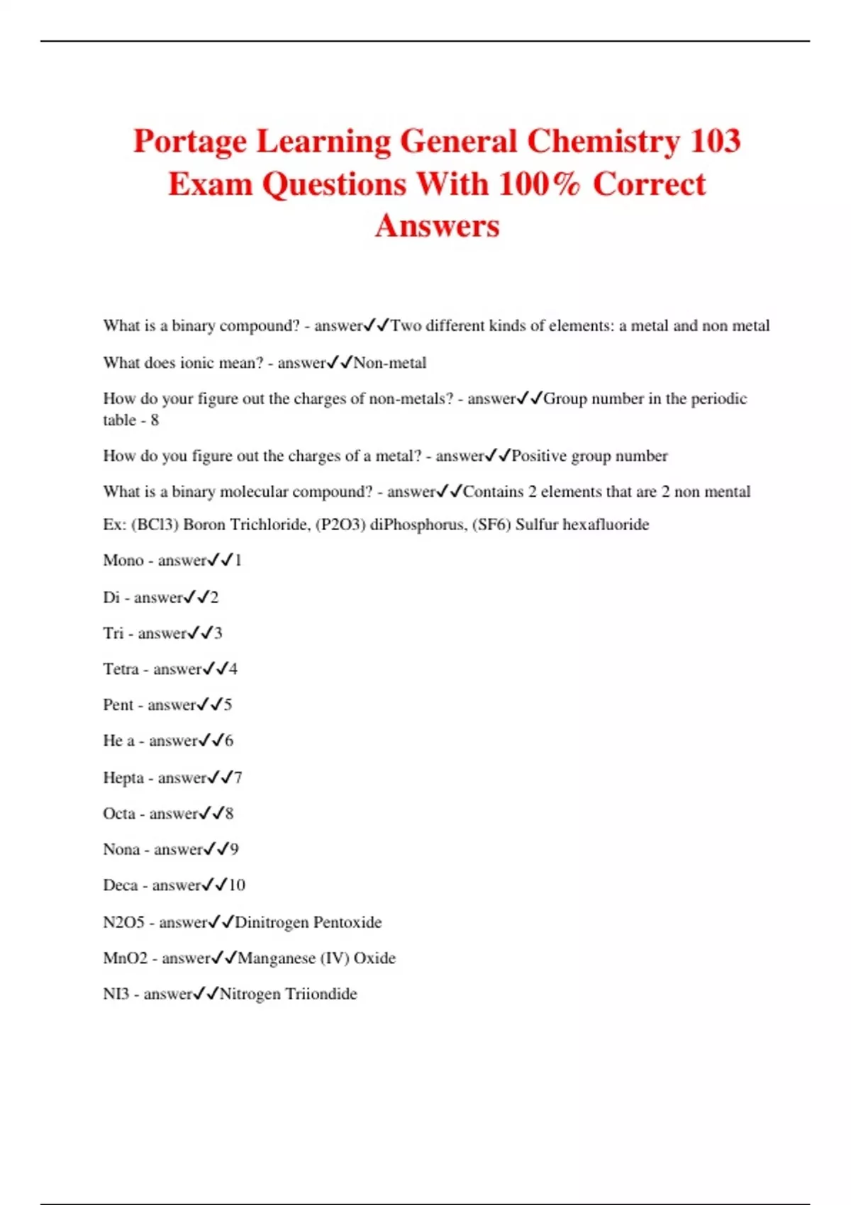 Portage Learning General Chemistry 103 Exam Questions With 100% Correct Answers