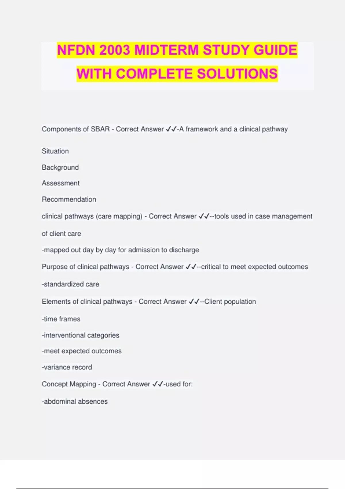 NFDN 2003 MIDTERM STUDY GUIDE WITH COMPLETE SOLUTIONS