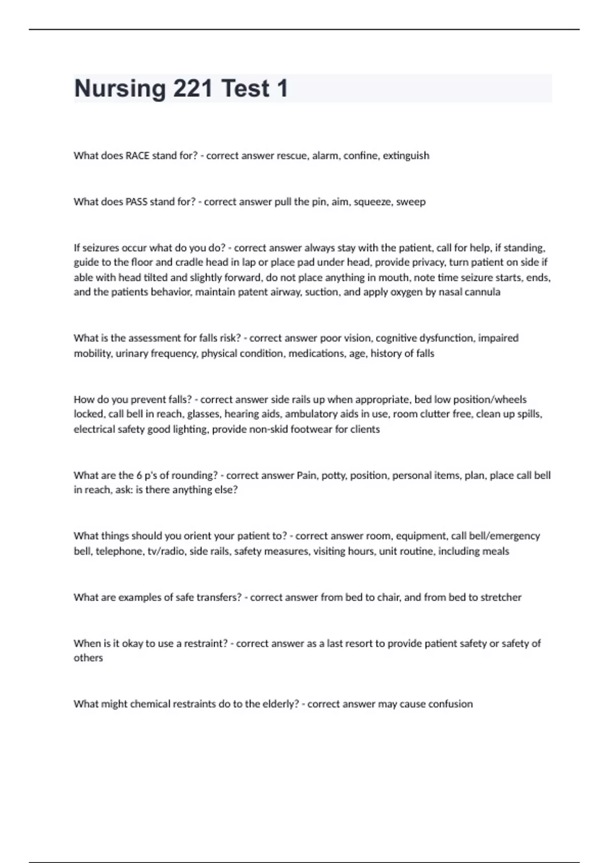 PACKAGE DEAL OF NSG 221 QUESTIONS WITH COMPLETE SOLUTION 221 Exam 3 mental health nursing Herzing University - Questions with complete solution Exam (elaborations) 221 Midterm Herzing University - Question and answers correctly solved Exam (elaborations) Community Health Concepts NSG 221 Midterm Marian University Herzing University -Question an