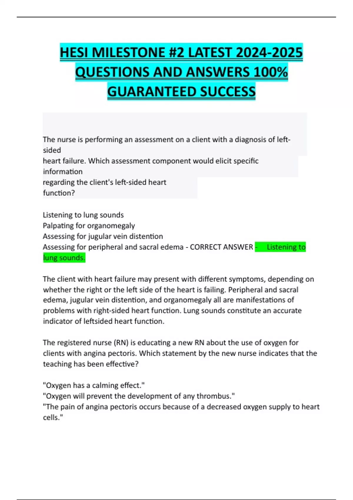 HESI MILESTONES BUNDLED EXAMS WITH COMPLETE SOLUTIONS