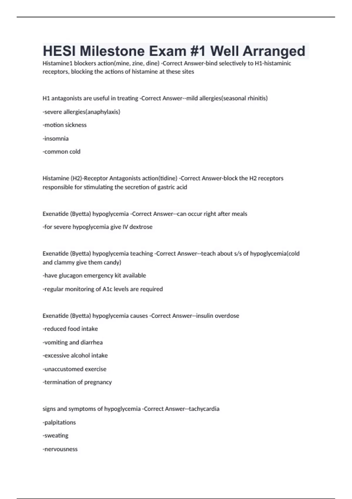 HESI Milestone Exam #1 Well Arranged