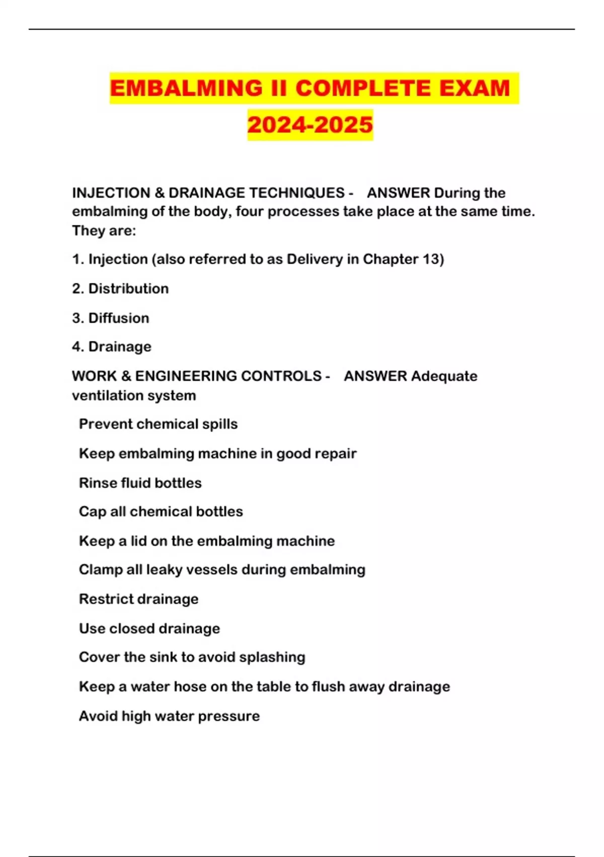 EMBALMING CHEMISTRY EXAM LATEST UPDATE