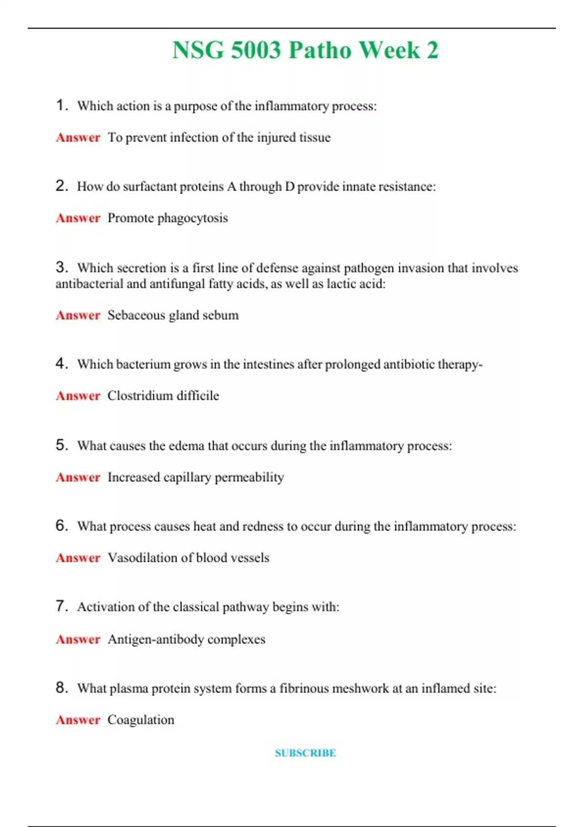 NSG 5003 Bundle Patho Week 2,8 TEST BANK | Updated 2024 | Graded A+ Solved 100% Correct