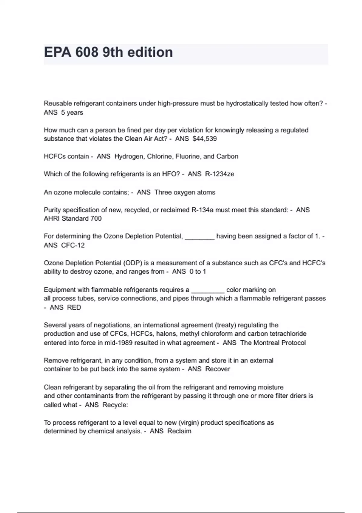 EPA 608 Certification Exam Questions And Answers Combined Package Solutions