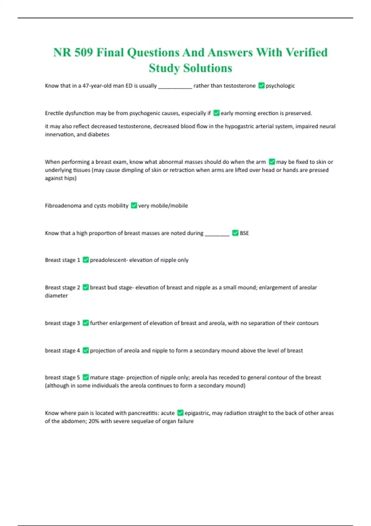 NR 509 Complete Package Deal With Study Questions And Answers