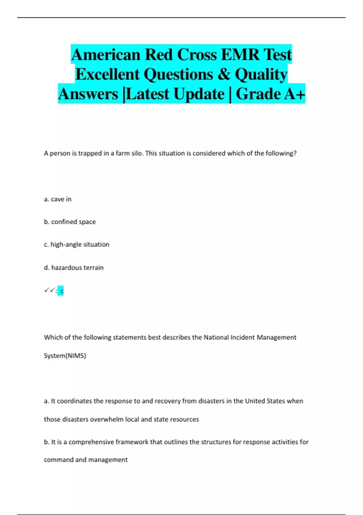 EMR Excellent Questions & Quality Answers |Latest Update | Grade A+ Pack
