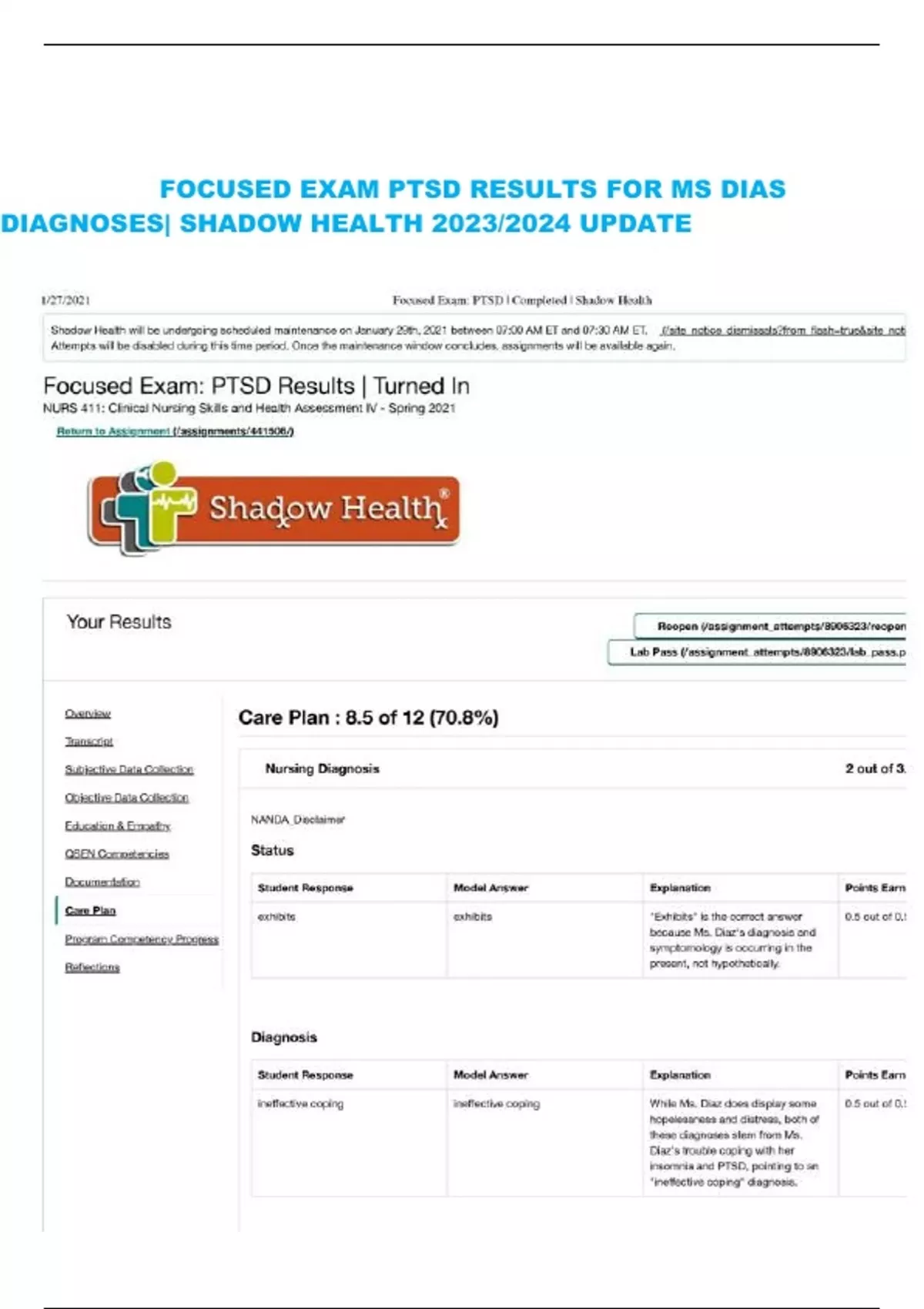 Shadow Health Combined Tests