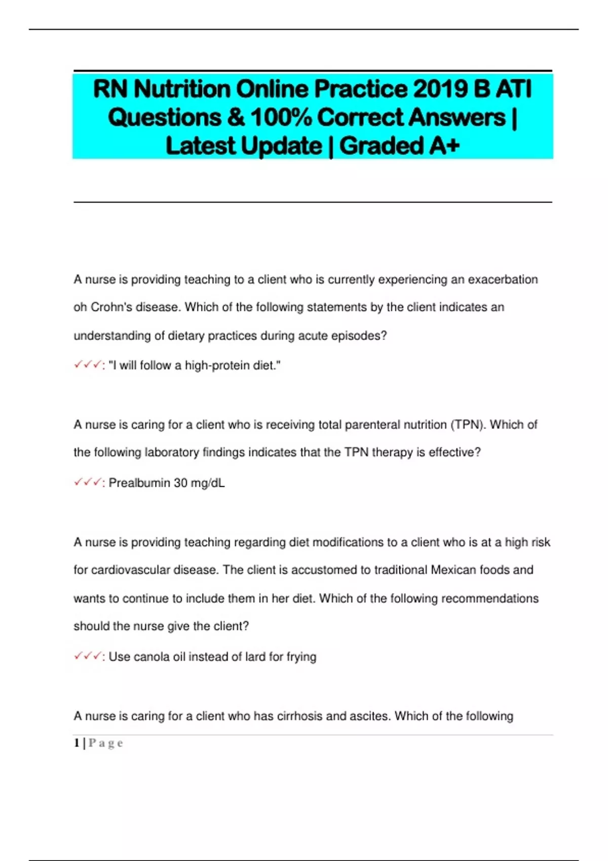 Nutrition and Health Excellent Questions & Quality Answers |Latest Update | Grade A Pack