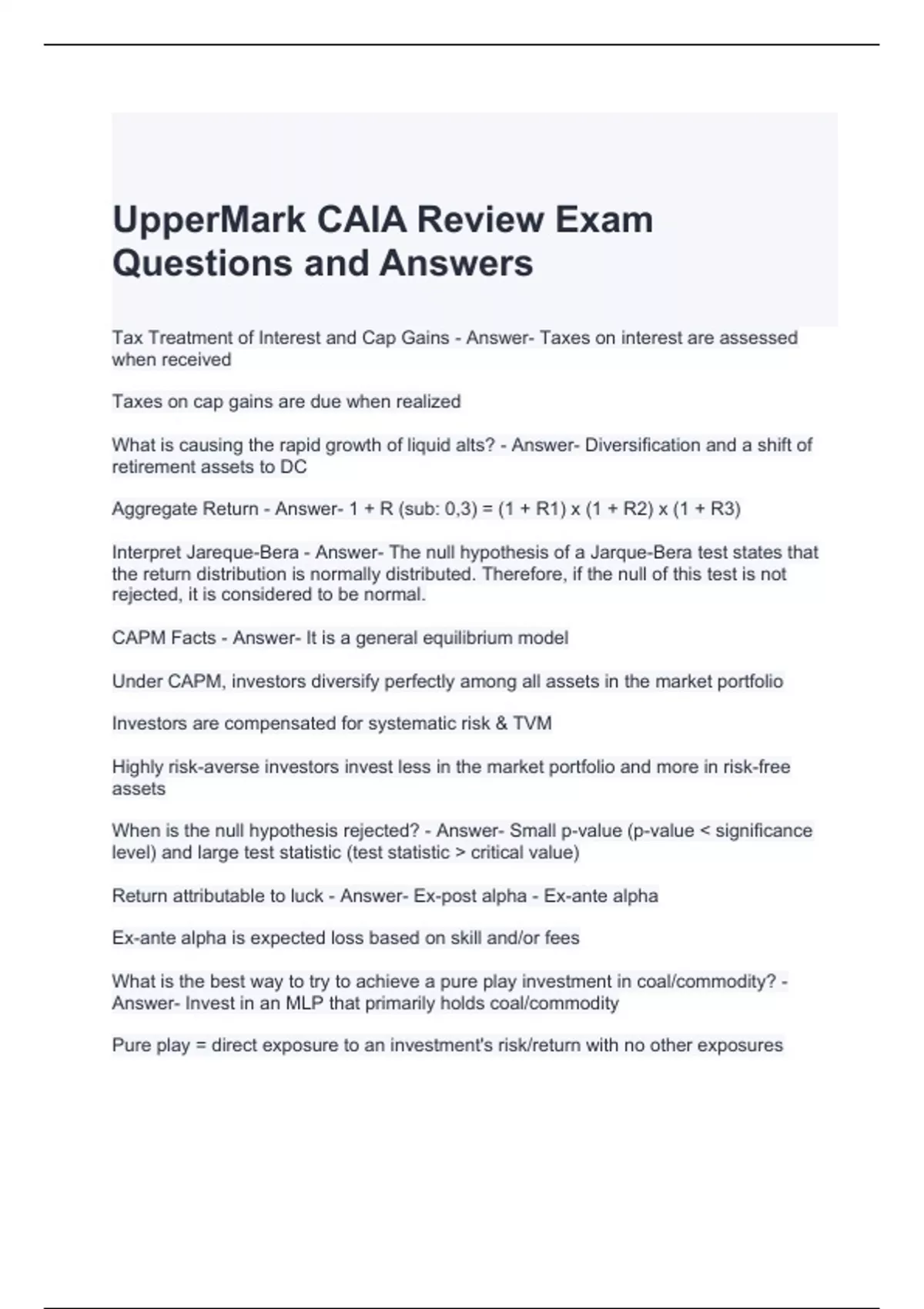 UpperMark CAIA Review Exam Questions and Answers 2024