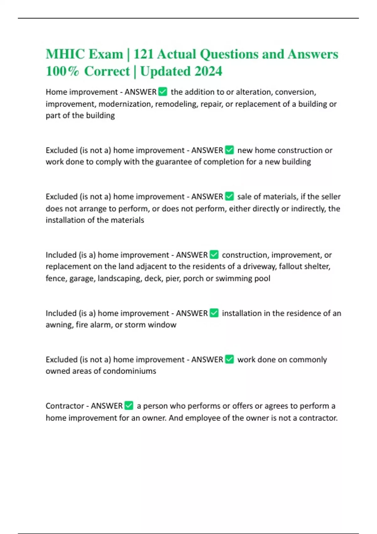 MHIC (Maryland Home Improvement Commission) BUNDLED Actual Questions and Answers 100% Verified | WELL ILLUSTRATED | Updated 2024