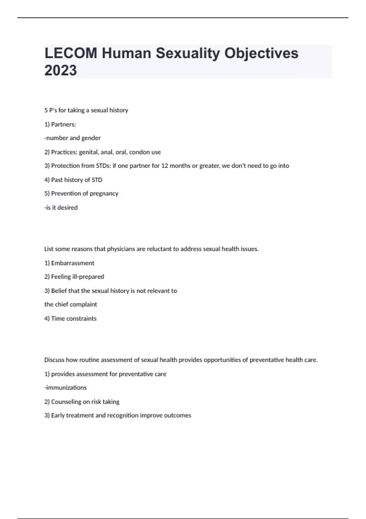 1 Exam (elaborations) human sexuality Collin College -Biology of Human Sexuality Final Exam (all chapters) with answers 2 Exam (elaborations) human sexuality Collin College -Ch. 1 Studying Human Sexuality well answered to pass 3 Exam (elaborations) human sexuality Collin College -Ch. 1: Why a Course in Human Sexuality?answered