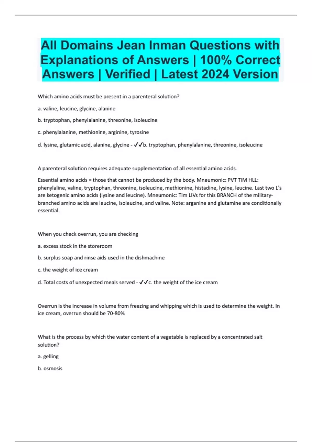 Jean Inman Bundled Exams Questions and Answers Latest Versions (2024/2025) (Complete and Accurate)